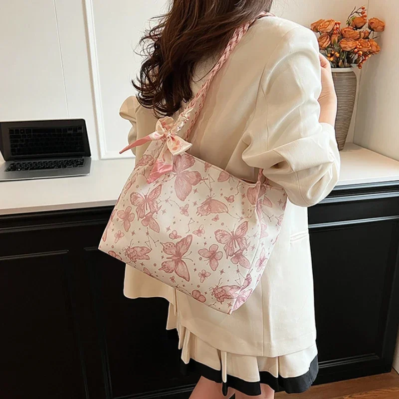 شنطة كتف بناتي بتصميم فراشة جذّاب وسعة كبيرة، مثالية للطالبات والنساء الباحثات عن الأناقة والعملية. مصممة لتناسب احتياجات الحياة اليومية والسفر والدراسة، وتُعد خيارًا مثاليًا لفصل الصيف لعام 2025 بلمسة عصرية فريدة.